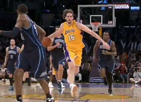 2012年4月19日 湖人99-87勇士 出战35分钟 16中7&罚球8中8 22分11板11助3盖帽0失误